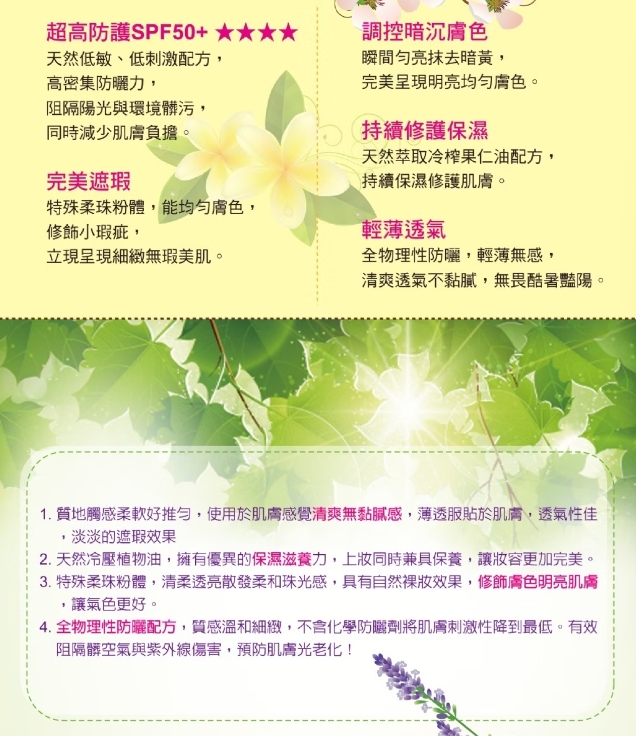 🤍超高防護SPF50+ 天然低敏、低刺激配方。