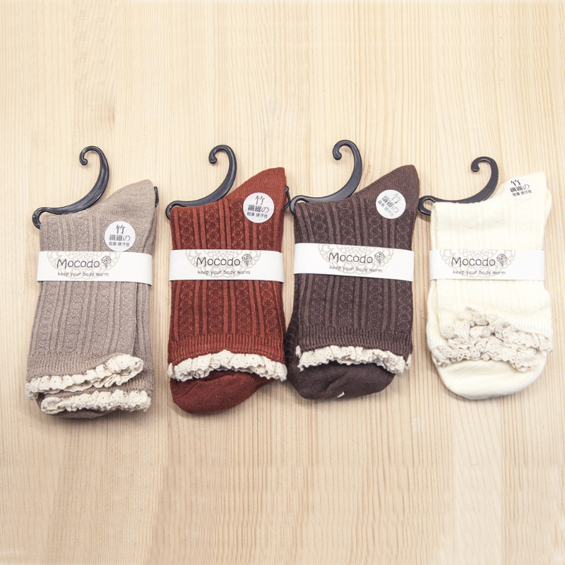 🍭mocodo 氣質蕾絲素色舒棉襪 駝色款