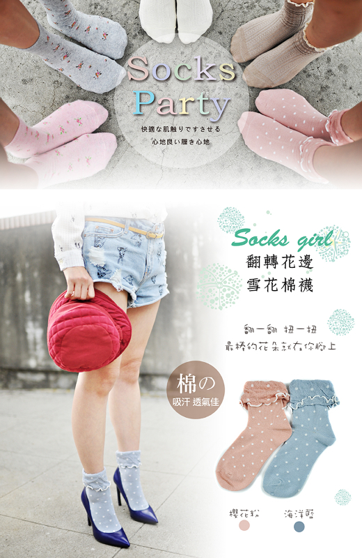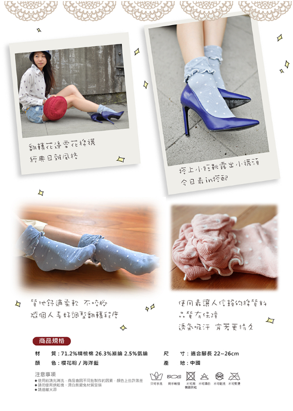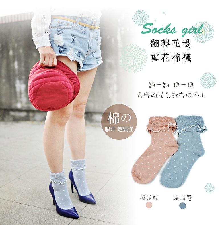 🍭mocodo 翻轉花邊雪花棉襪 藍色款