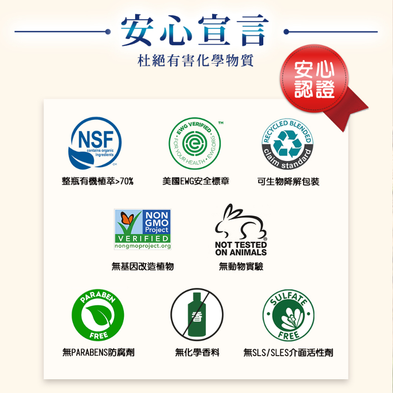 🌟美國NSF/ANSI 305有 機成分認證,含70%以上有機成份