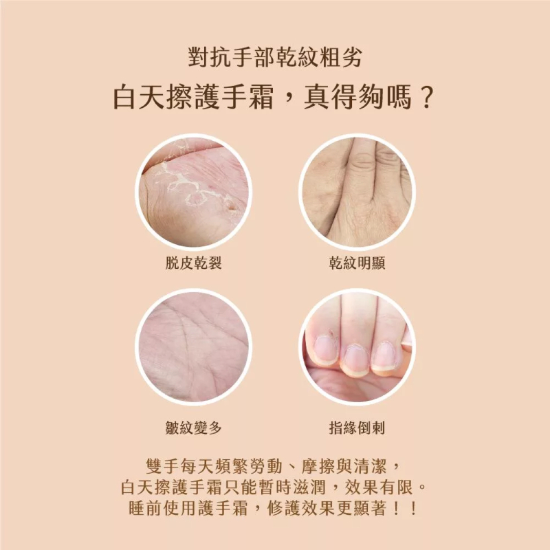 🌟夜間修護,改善手部乾燥粗糙:高濃度滋養成分,專為夜間密集保養設計,早晨醒來雙手柔嫩潤澤。