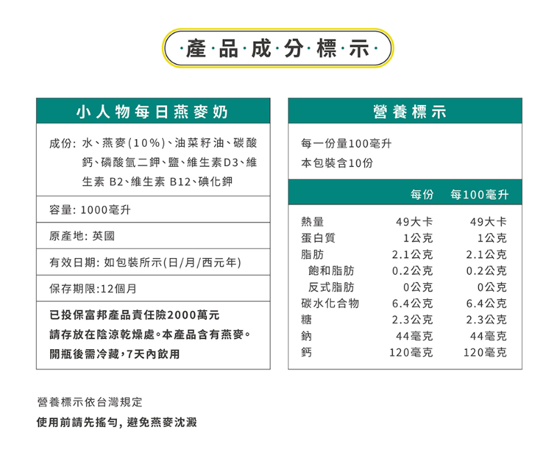 🌟因燕麥本身含天然的有甜味,本產品不添加糖、防腐劑、穩定劑(磷酸氫二鉀)。