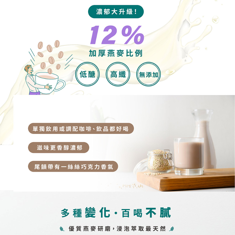 🌟提升燕麥比例(12%),調製濃厚燕麥奶。尾韻帶有一絲絲巧克力香氣。