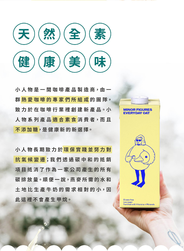 🌟口感豐富:濃郁滑順,回味無窮!小人物每日燕麥奶口感細膩,不僅適合單獨飲用,還能融合各種飲品和料理,帶來極致享受!