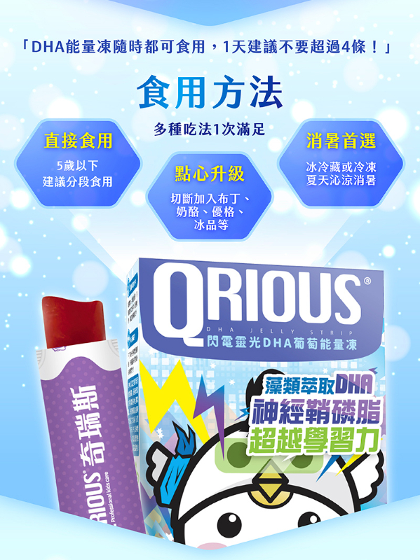 好吃高含量 QRIOUS®奇瑞斯閃電靈光 DHA+神經鞘磷脂葡萄能量凍