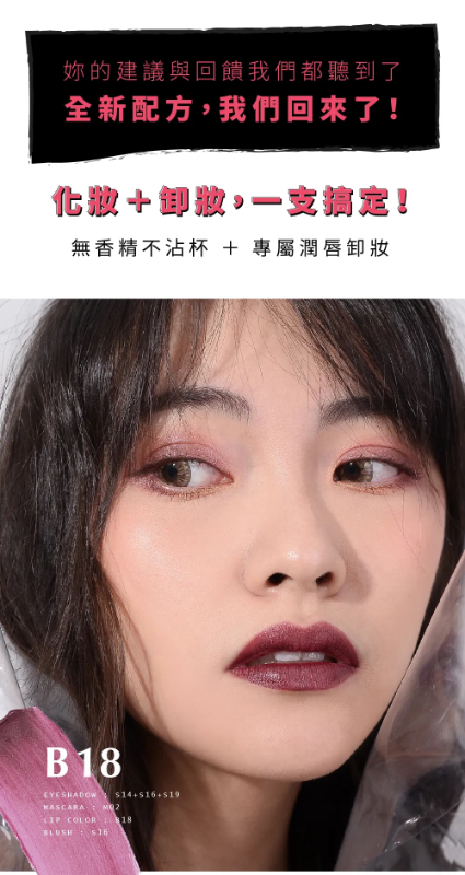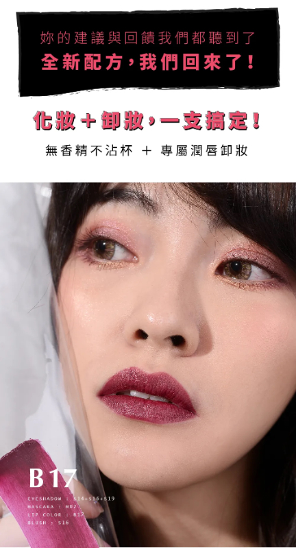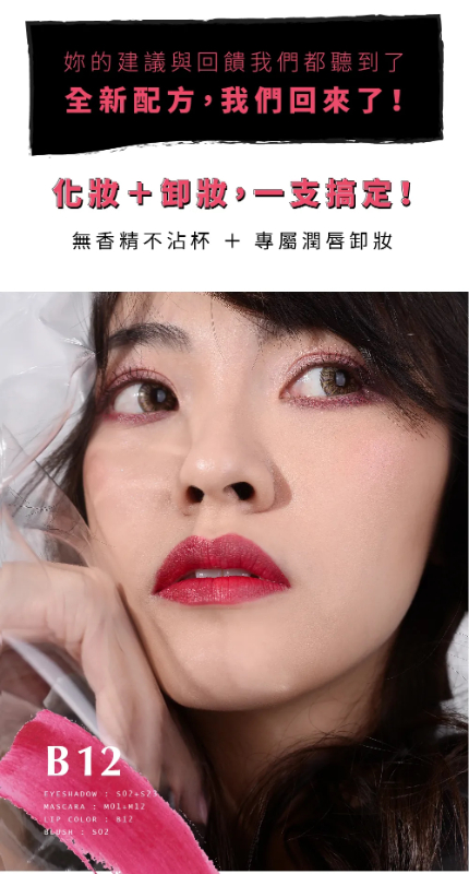 👉如有脫妝的現象發生,可使用透明端的卸妝液卸除,再重複步驟1補妝即可。