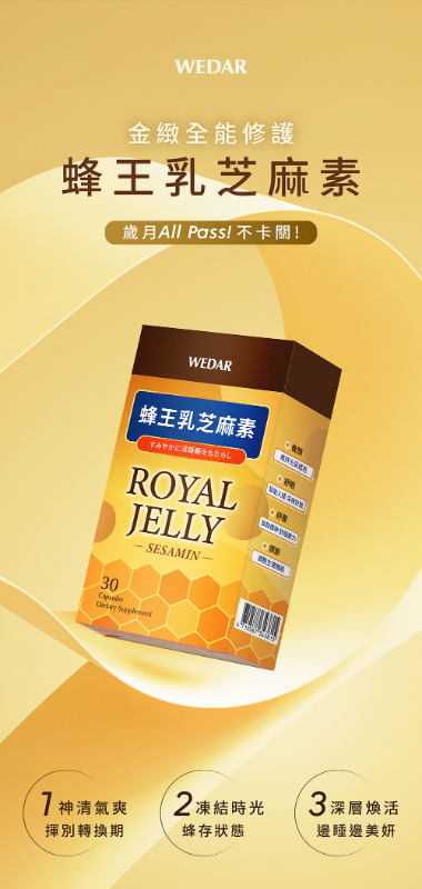🔹主商品:蜂王乳芝麻素(0.6公克/顆,30顆/盒)