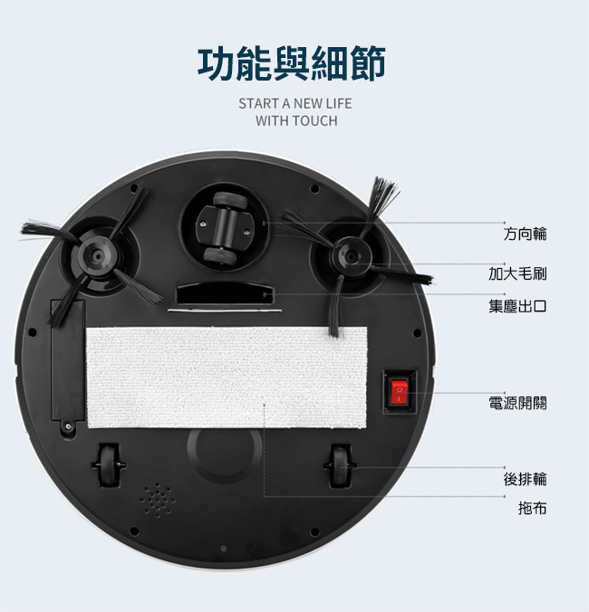 ◆一鍵啟動按鈕,低噪音清掃,仿人工擦拭地板 ,超強大大吸力吸塵
