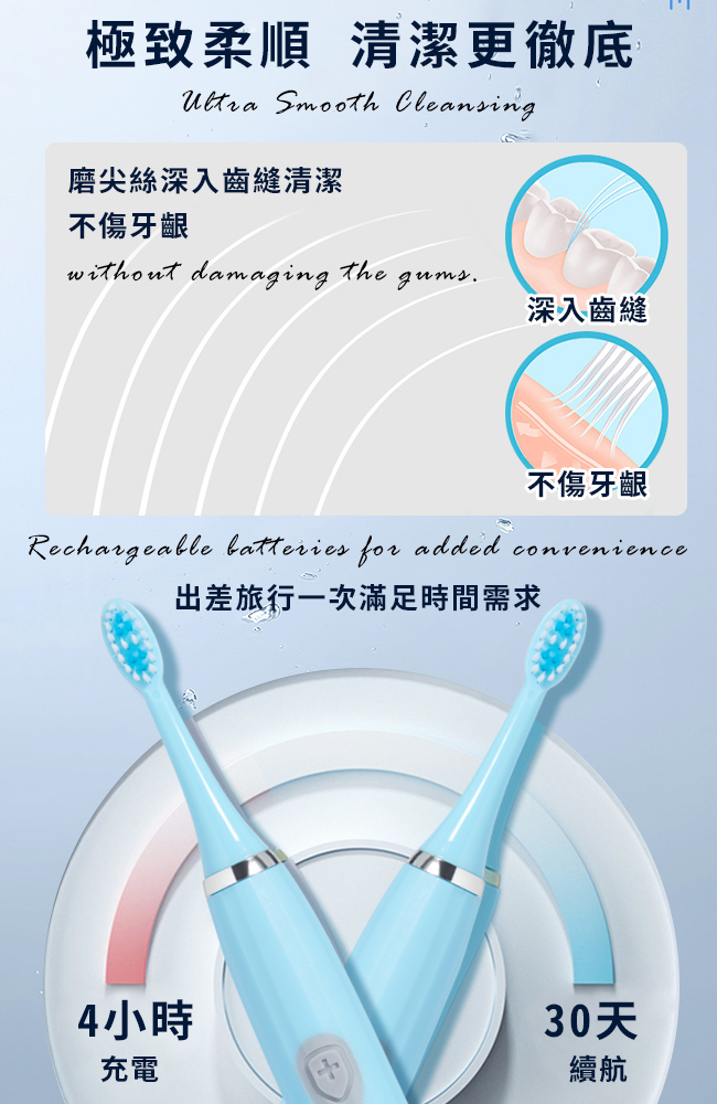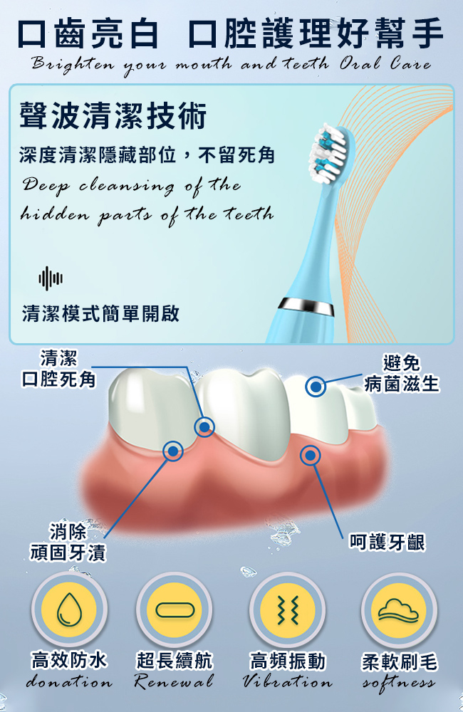 ★IPX7級機身防水功能,高效能機芯,齒縫強力掃除深層清潔