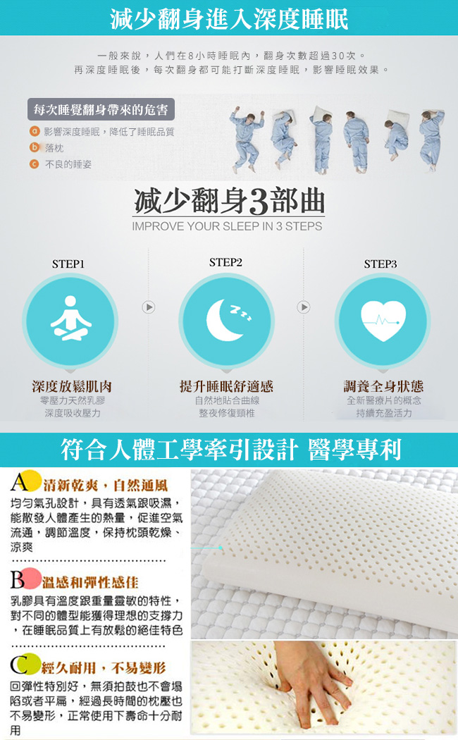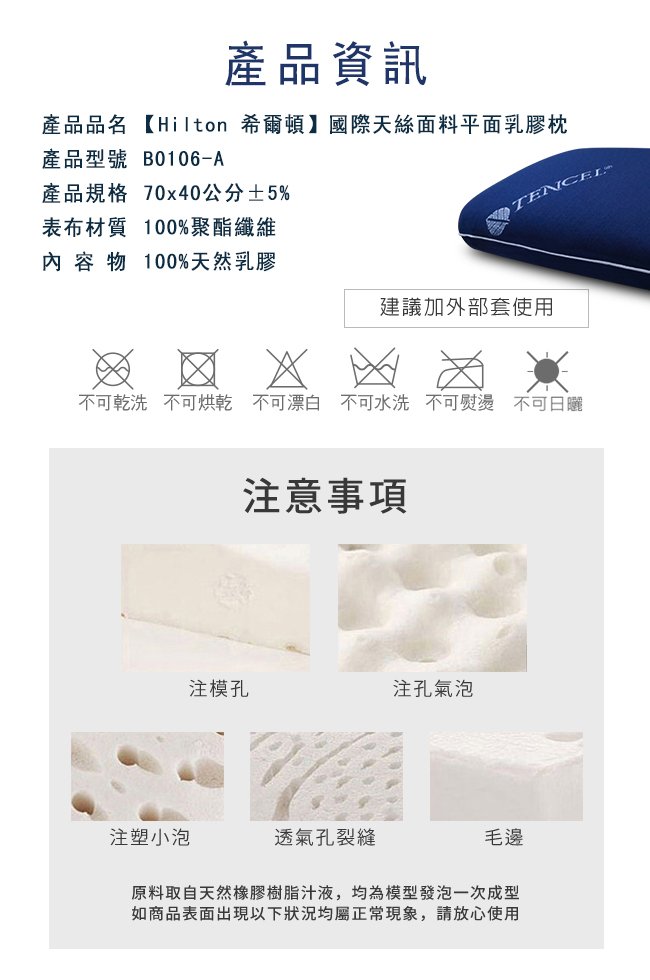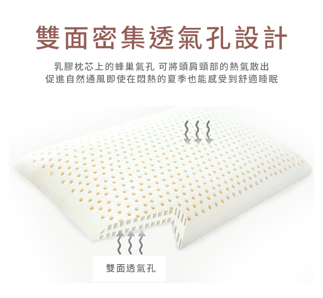 ✦100% 天然乳膠填充,會呼吸的枕頭