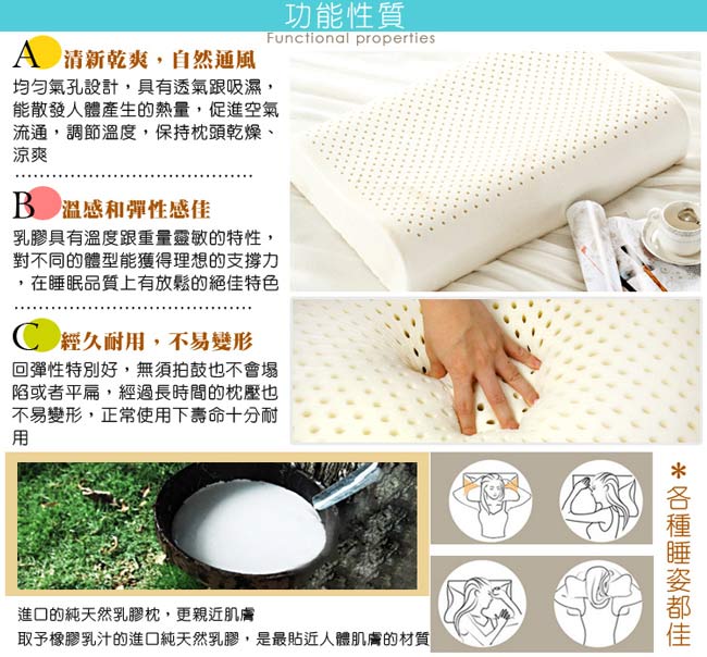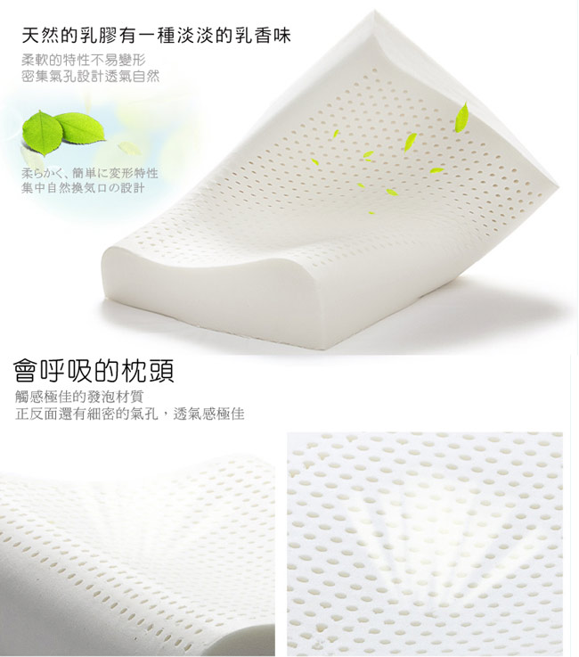 ✦100% 天然乳膠填充,會呼吸的枕頭