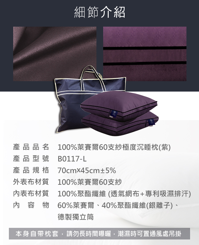 ※本身自帶枕套,請勿長時間曝曬,潮濕時可置通風處吊掛
