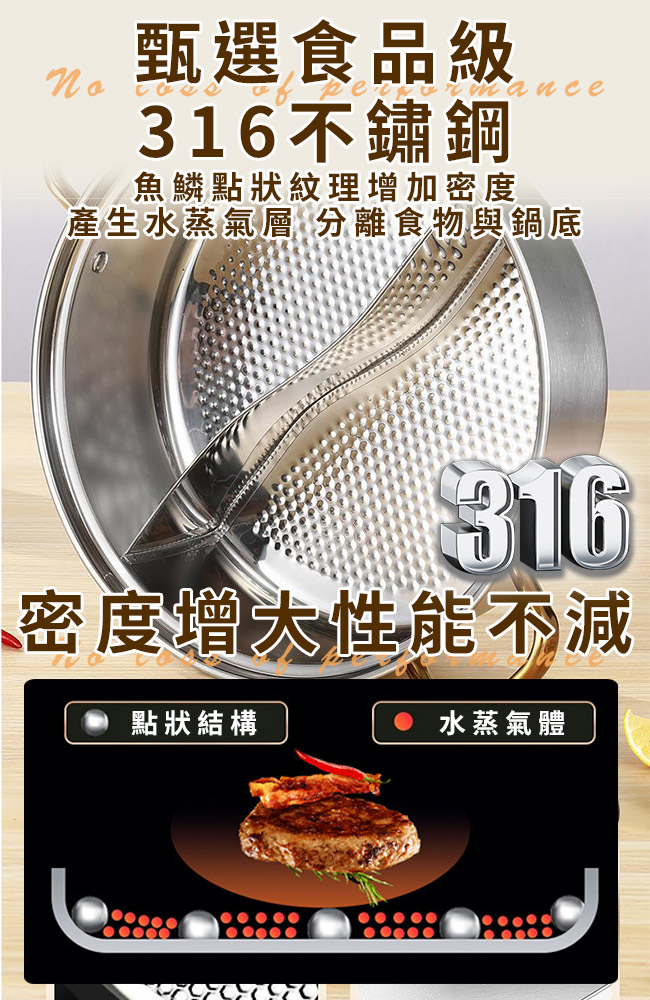 ◆採用頂級316不鏽鋼製造,導熱效能快速且均勻