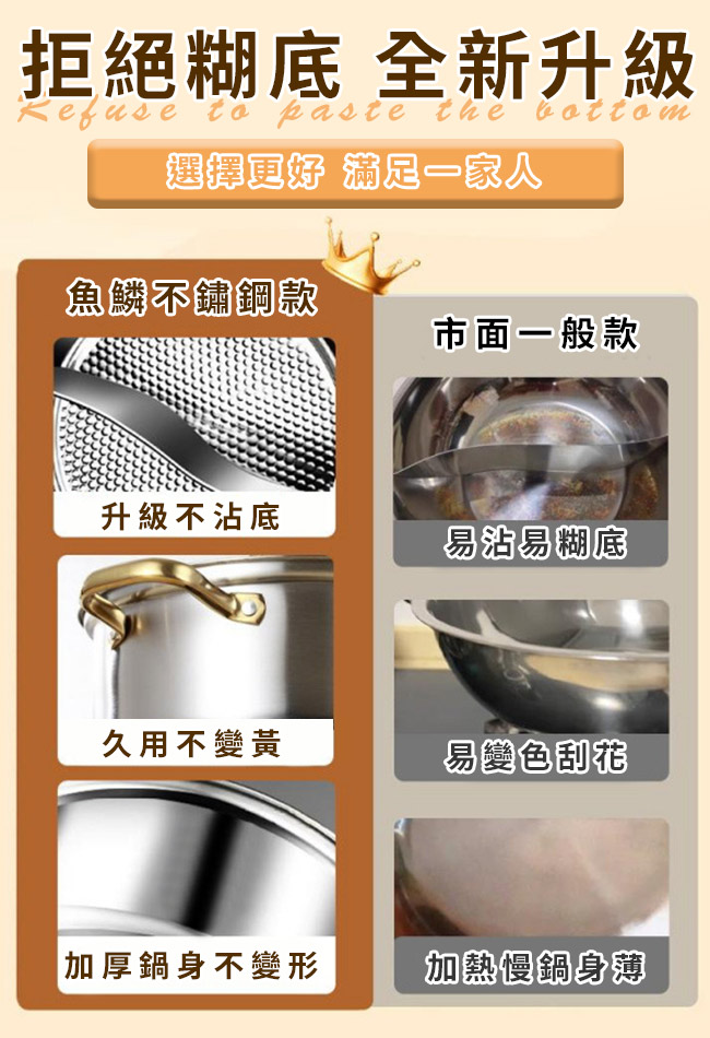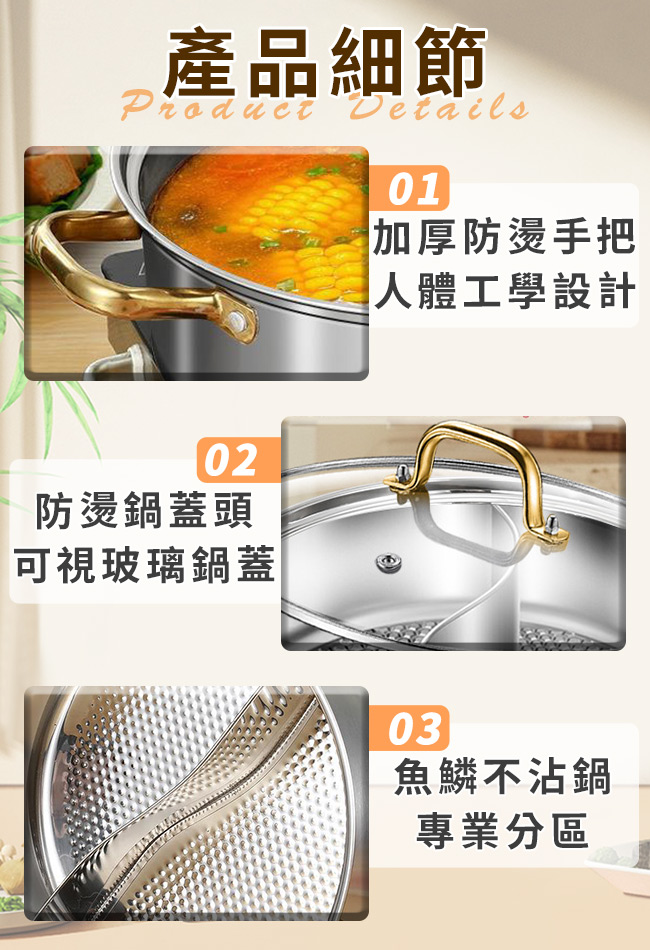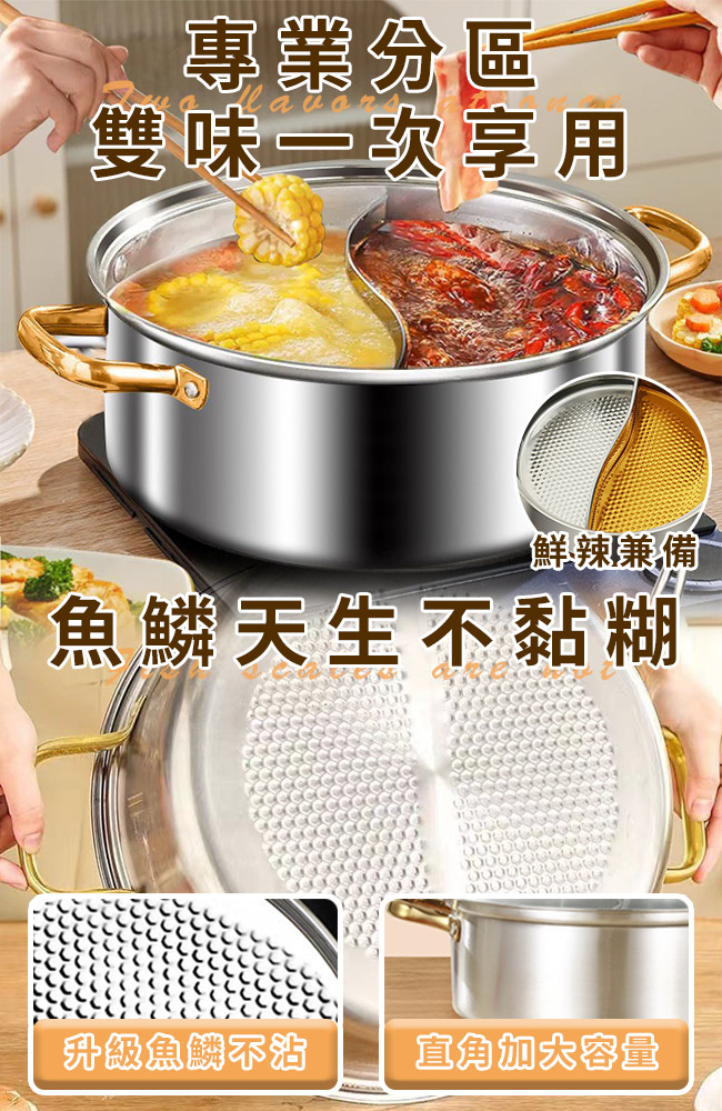 ◆一鍋雙味,優良分區,魚鱗物理不沾設計,不糊底