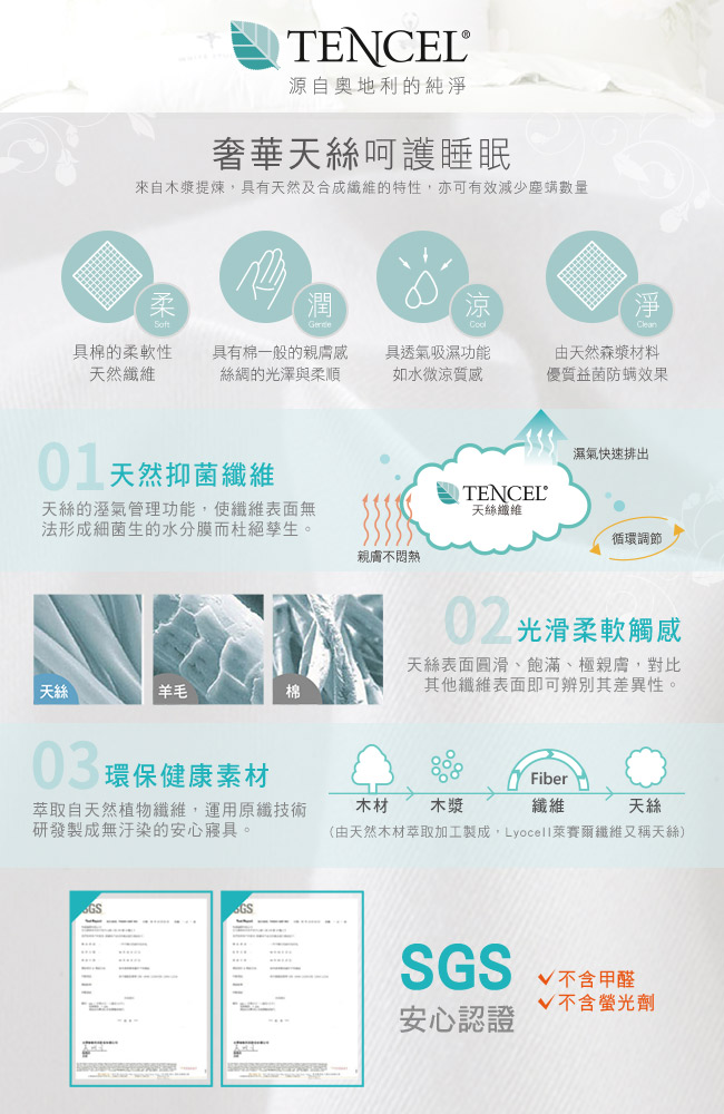 天絲具有,像嬰兒皮膚一樣的光滑細嫩觸感,對皮膚柔和自然