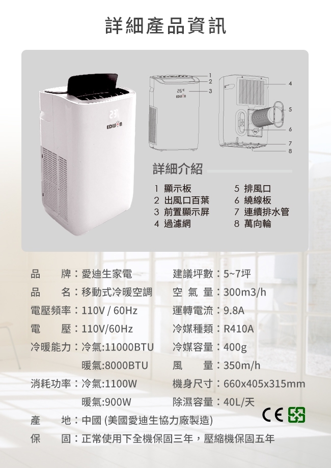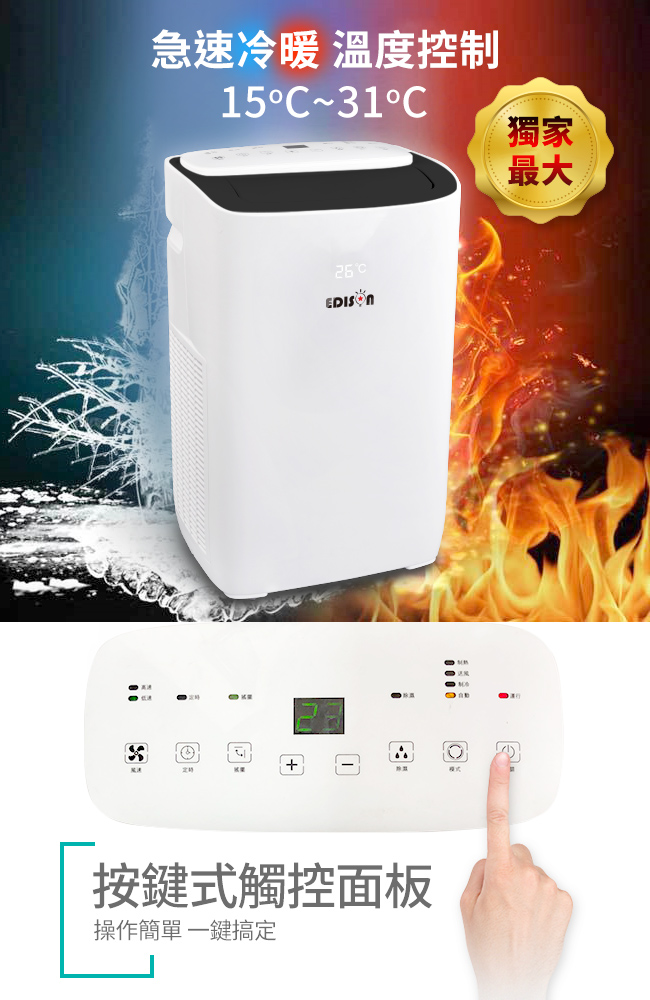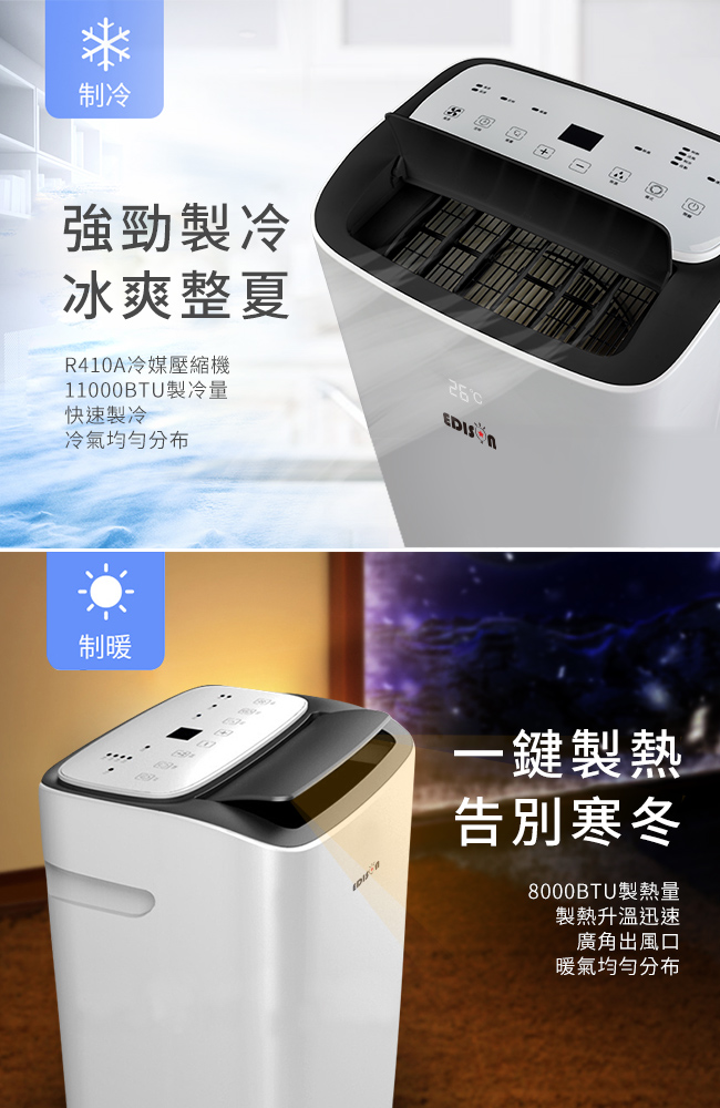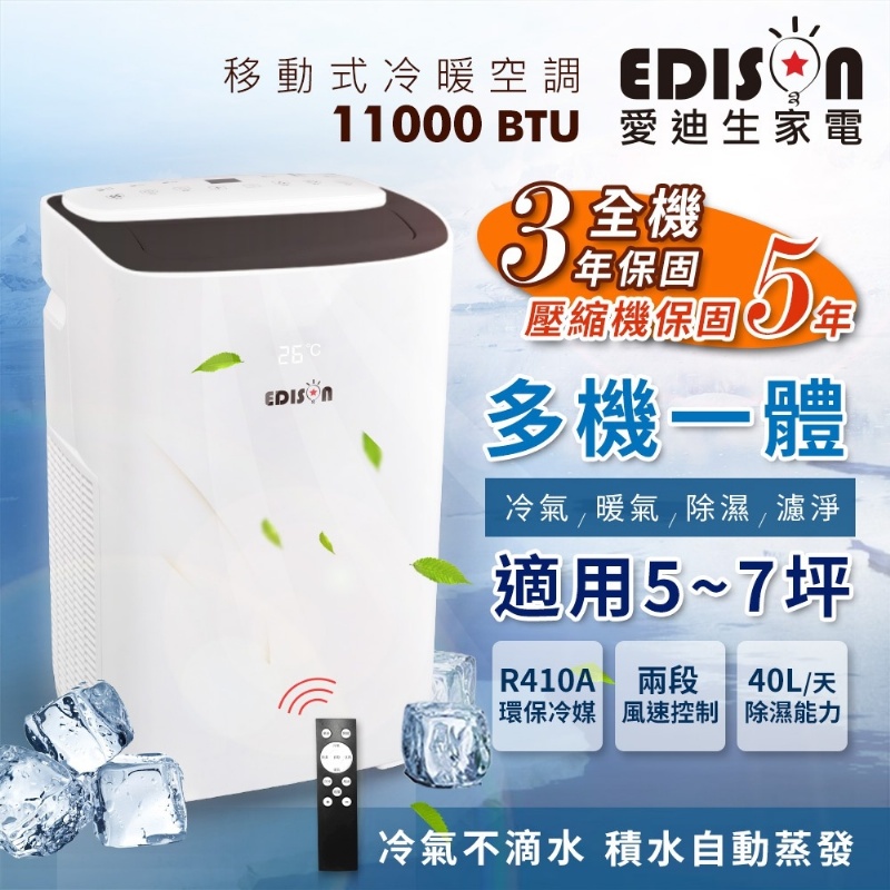 愛迪生移動冷暖空調 5~7坪適用