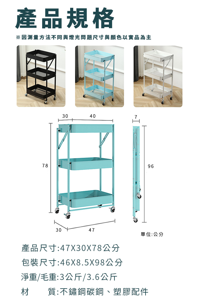 不用時也能輕鬆摺疊,不佔家中空間產品尺寸:47X30X78公分