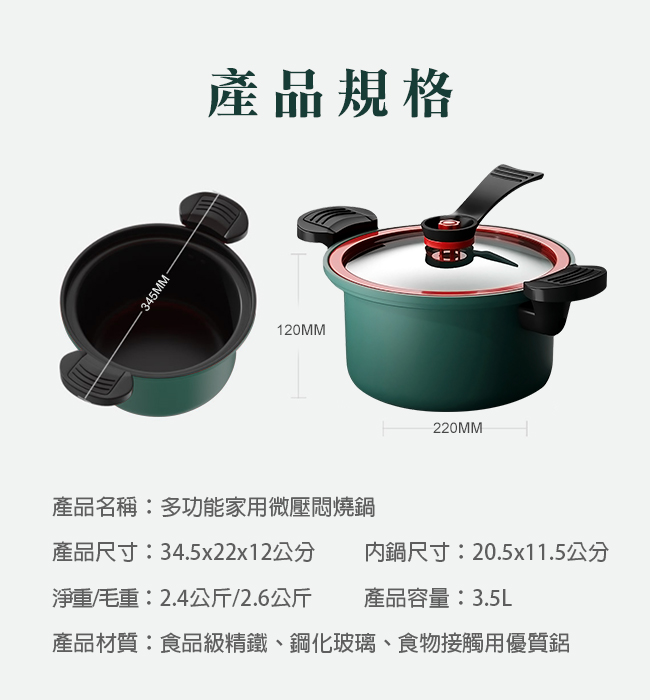 ●3.5L食品級精鐵,更省燃氣更省時,特殊技術烹調讓食物更加美味,助你成為料理新星。