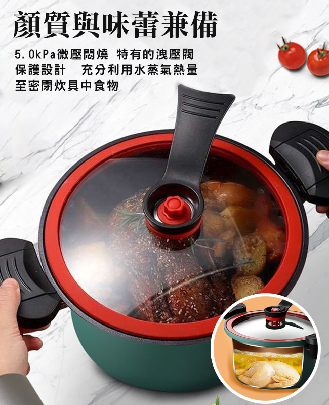 微壓聚能新創新,特有的氣閥洩壓保護設計,烹飪更安心。