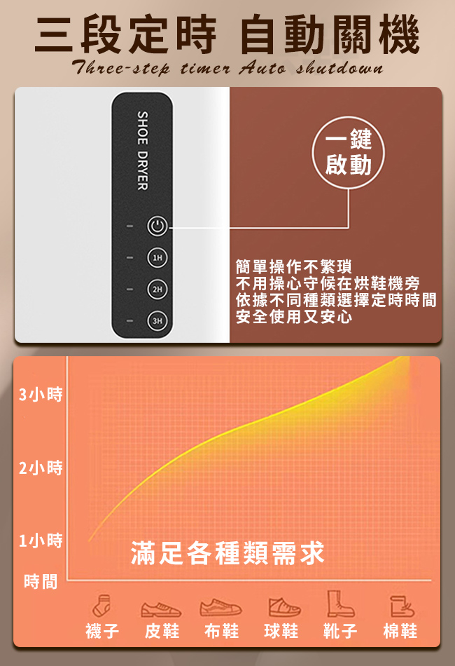 ◆三段定時自動關機,一鍵啟動不繁瑣,簡單操作又安心