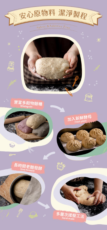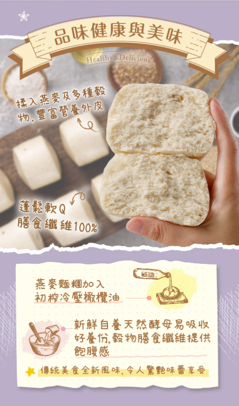 🌾擁有主要營養成分的多醣燕麥,包入多種新鮮雜糧穀物,新鮮自養天然酵母易吸收好養份,燕麥纖維口感紮實Q彈有嚼勁。