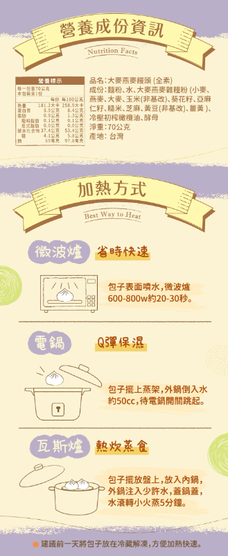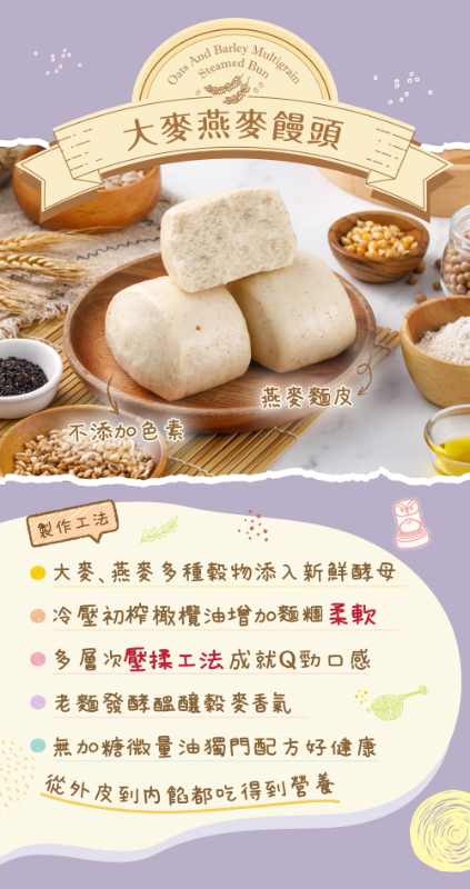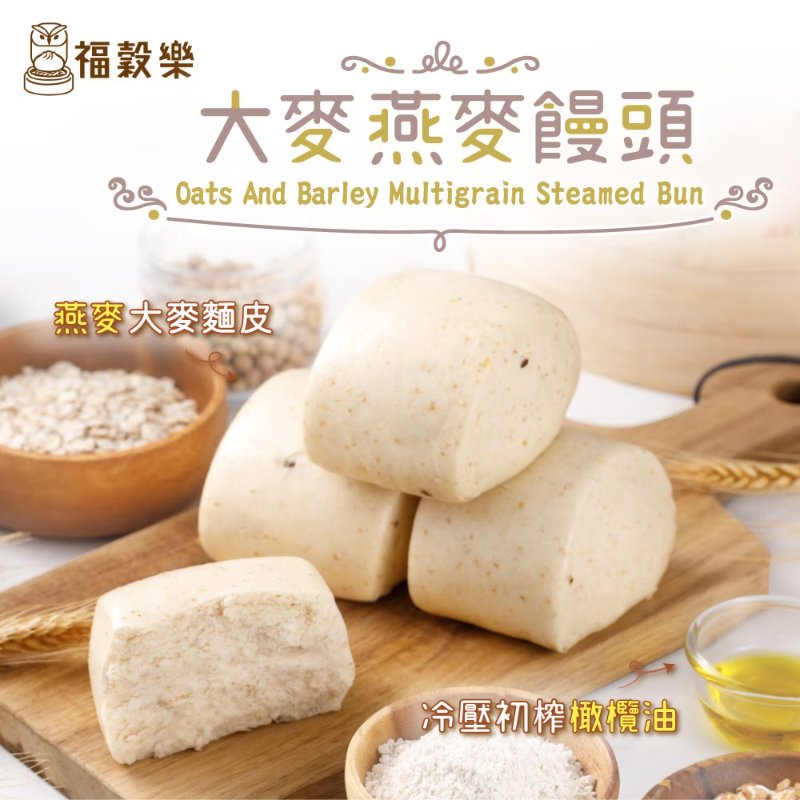 🌾大麥燕麥饅頭 膳食纖維含量:3.3g/每100公克