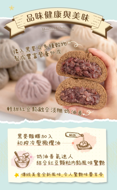🌾黑麥外皮豐富營養,結合迷人奶油香氣顆粒紅豆內餡,從外皮到內餡都吃得到營養美味!"