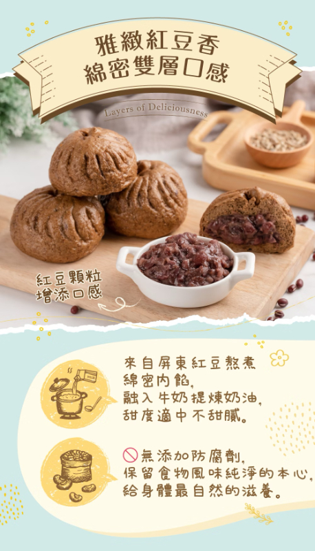 🌾屏東紅豆熬煮綿密內餡,融入牛奶提煉奶油,甜度適中不甜膩
