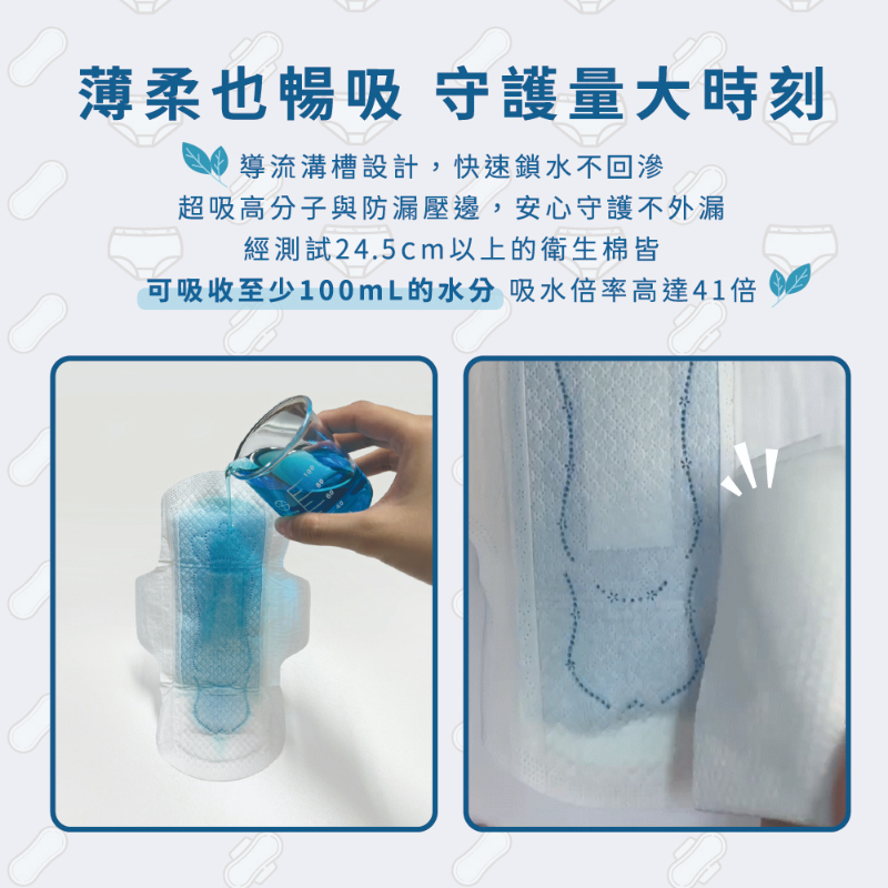 🌟24.5cm以上衛生棉可吸收最少100mL水分