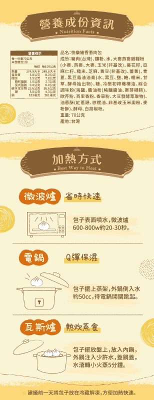 ✅商品成分:豬肉(台灣)、麵粉、水、大麥燕麥雜糧粉(小麥、燕麥、大麥、玉米(非基改)、葵花籽、亞麻仁籽、糙米、芝麻、黃豆(非基改)、薑黃)、青蔥、黑豆蔭油油膏(水、黑豆、鹽、糖、糯米、甘草、酵母抽出物)、糖、冷壓初榨橄欖油、綜合調味粉(海鹽、醬油粉(純釀醬油、麥芽糊精)、歐芹粉、百里香粉、香草粉、大豆發酵萃取物)、油蔥酥(紅蔥頭、棕櫚油、非基改玉米澱粉、麥粉酥)、酵母、白胡椒粉