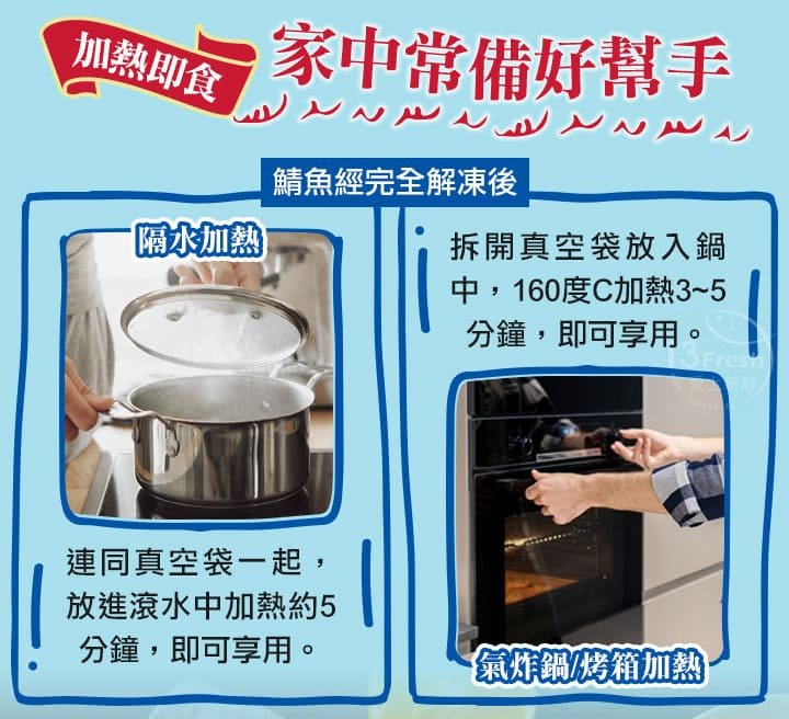 👉微波爐烹調法:袋中取出冷凍鯖魚,放微波爐(1000w)解凍約2分鐘,產品解凍後,再高溫烹調約3分鐘,即可食用。