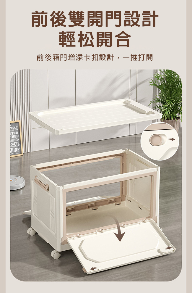 ◆前後雙開門卡扣設計,輕鬆開合,一推就開