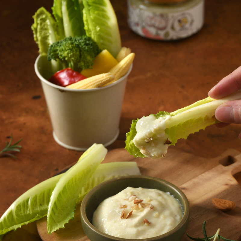 🥗杏仁奶酥抹醬鮮蔬沙拉:杏仁奶酥抹醬與希臘酸奶、檸檬汁和少許鹽混合製作成蘸醬。搭配生菜或蔬菜棒,美味又健康。