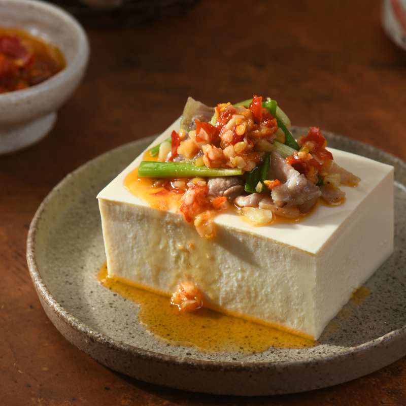 🧊香緹辣椒醬涼拌豆腐:切好的豆腐淋上香緹辣椒醬及少許醬油,放上一些蔬菜和喜好的香料,即可食用,清爽美味。