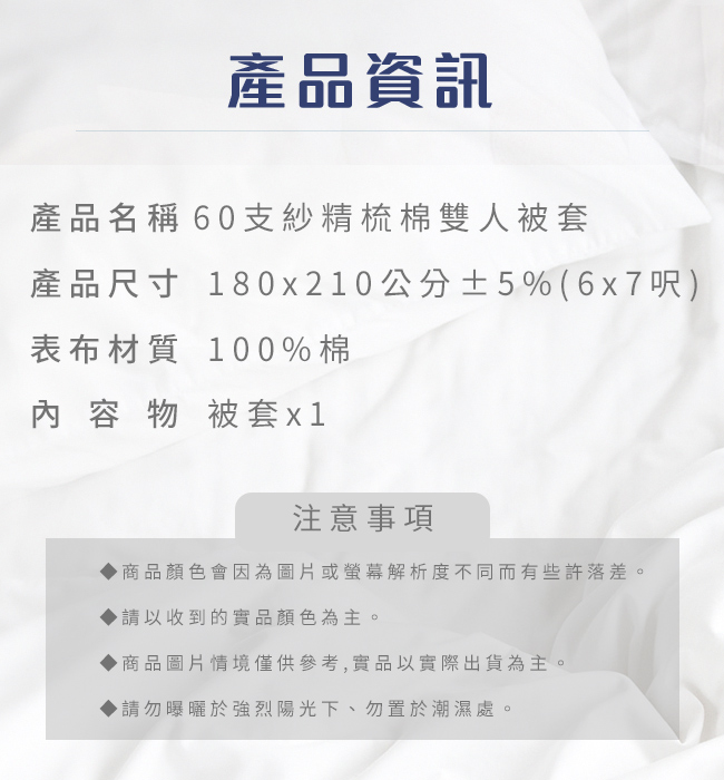 ◆台灣製五星級精梳純棉60支紗寢具組,品質保證