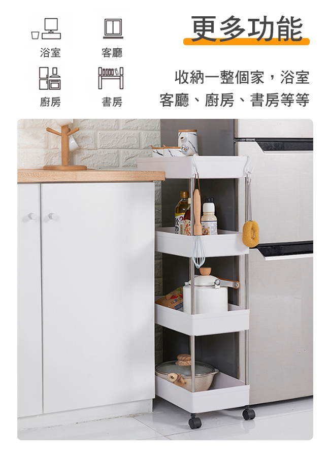此架可作為家用儲物架、收納架、貨架、整理架、化妝架、廚房架等。