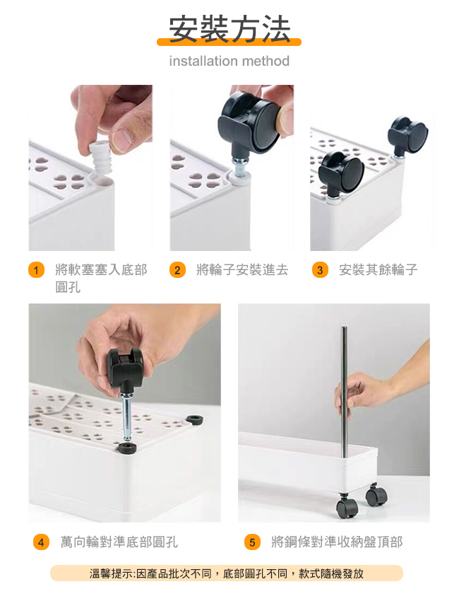 內容物:不鏽鋼鋼管條x12、S形掛勾x4、萬向輪x4、軟塞x4、軟塞蓋x4、層架x4