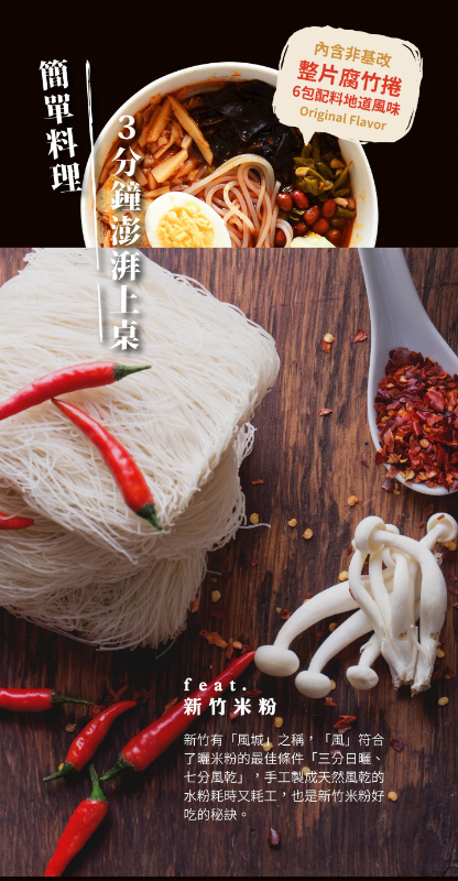 🔹商品內容:米粉(新竹米粉)、螺螄湯料包、辣椒油包、香醋包、酸筍包、酸豆角、木耳、蘿蔔乾料包,非基改豆皮卷 (醬料內容:馬來西亞進口)。