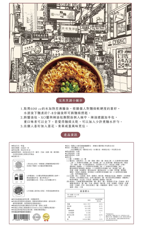 🔵淨重:總重為452克,單包麵為113公克 (內含麵體85克、醬油包20克、XO醬5g、辣油包3克),本包裝含4包。