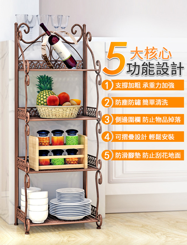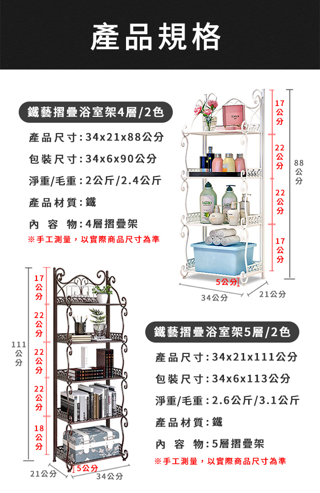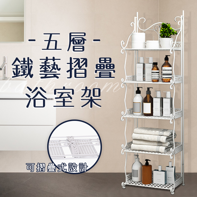 產品品名:鐵藝摺疊五層萬用架/浴室架/兩色