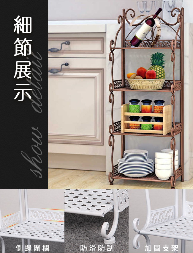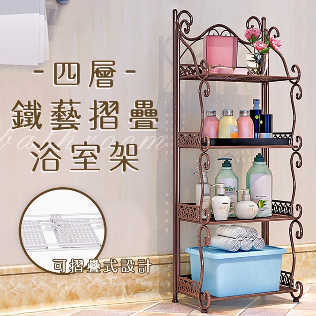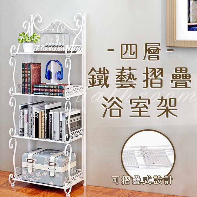產品品名:鐵藝摺疊四層萬用架/收納架/兩色