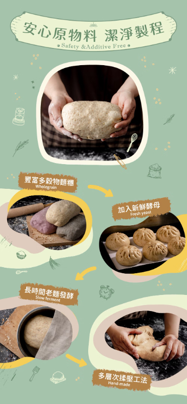 🌾選用大麥、燕麥多種穀物添入新鮮酵母及冷壓初榨橄欖油揉製麵糰