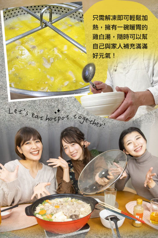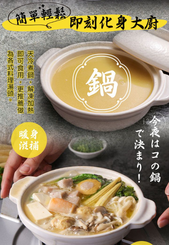 🔹食用方式:直火加熱:將本產品解凍後拆袋倒入鍋中,以中火加熱至沸騰3~6分鐘即可輕鬆享用。(依解凍狀態不同,請自行調整加熱時間)。