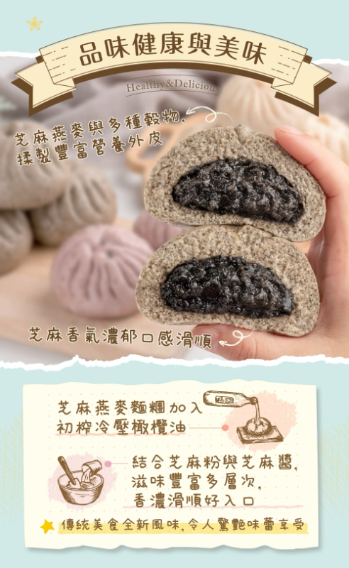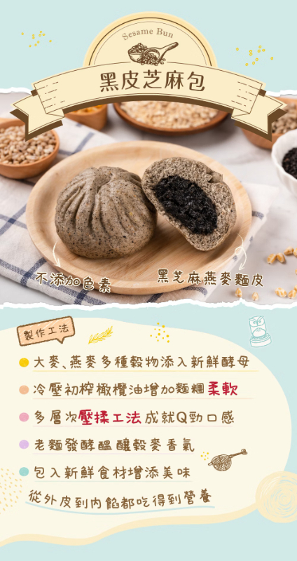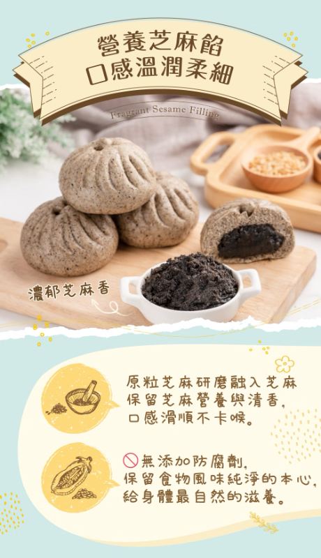 🌾原粒芝麻融入穀麥雜糧外皮,芝麻粒調入芝麻醬雙重入餡口感滑順不卡喉