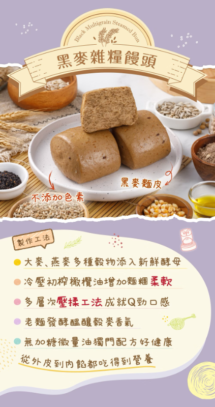 🌾黑麥雜糧饅頭 膳食纖維含量:5.2g/每100公克
